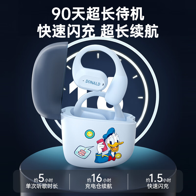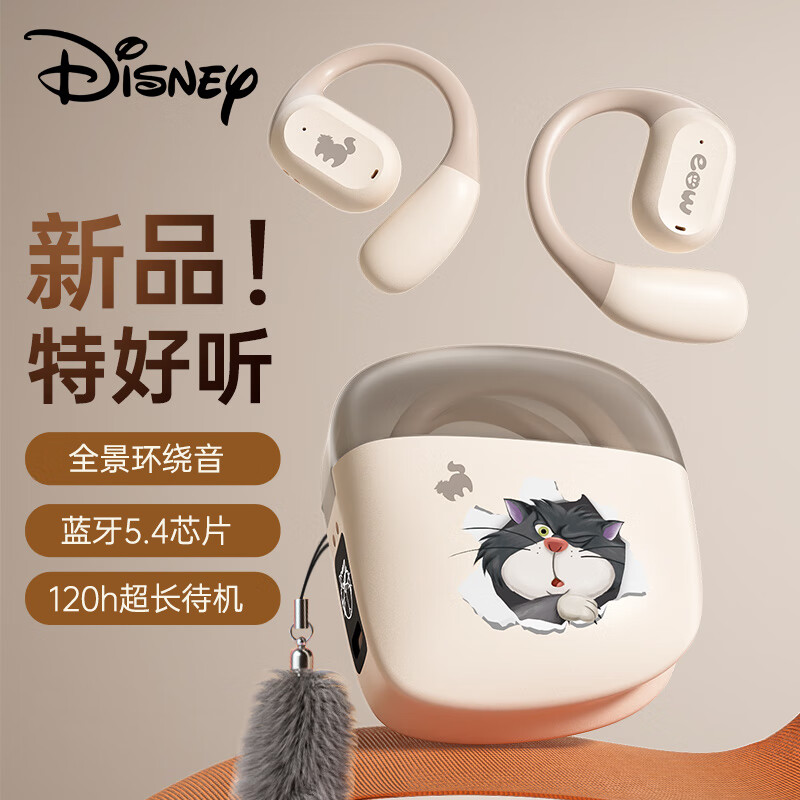 迪士尼(DISNEY)【音质榜TOP】蓝牙耳机 OWS骨传导概念夹耳式 开放式不入耳挂耳游戏音乐降噪长续航-路西法QSO02价格:129.00元!