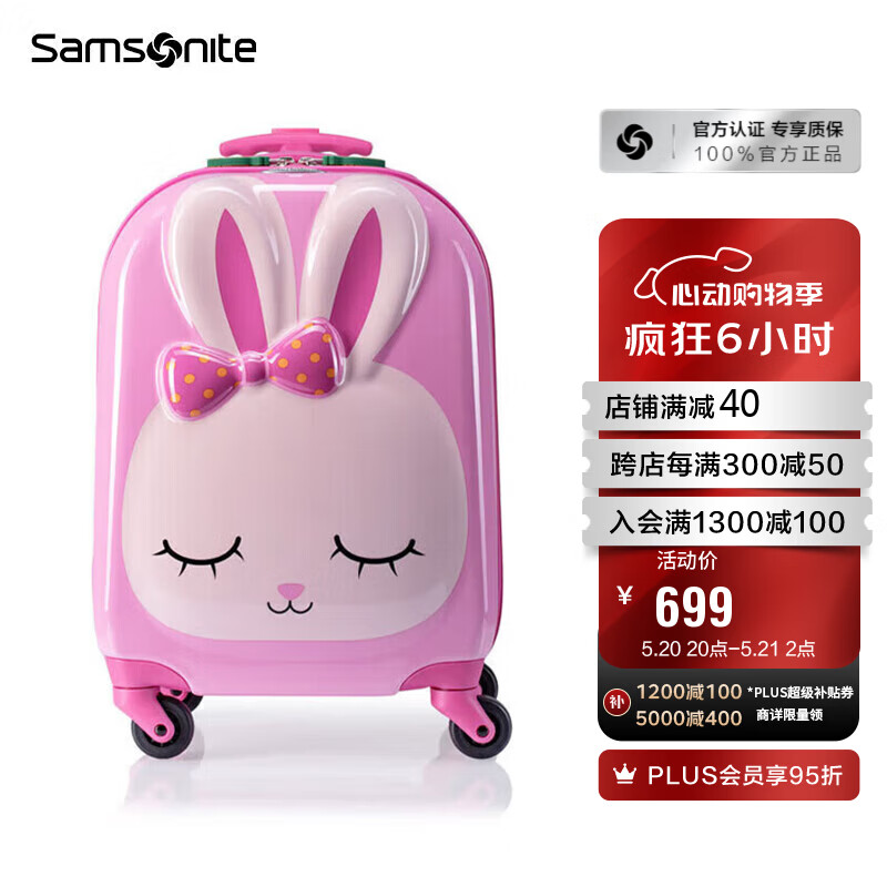 新秀丽(Samsonite)拉杆箱儿童旅行箱登机箱时尚萌趣行李箱U22*90120粉色兔子16英寸价格:699.00元!