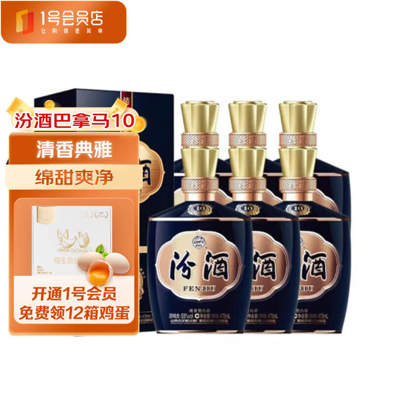 汾酒 白酒 1915巴拿马10 清香型 53度 475ml *6瓶 整箱装 1号会员店价格:1599.00元!