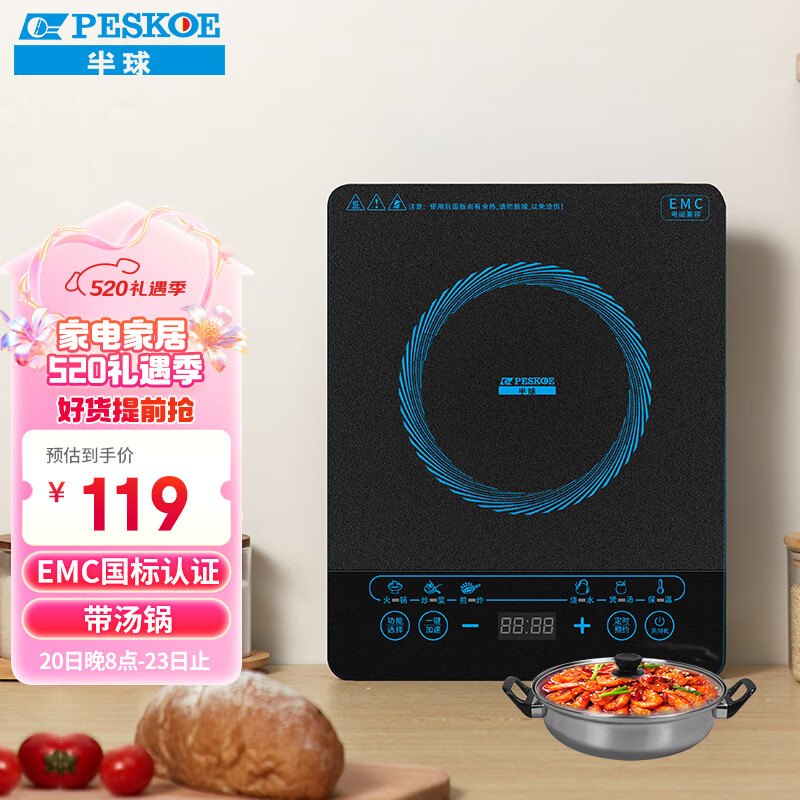 半球(PESKOE)电磁炉 2100W 大功率触控按键 八档火力 定时功能电磁灶火锅炉 HY-219(带汤锅)价格:119.00元!
