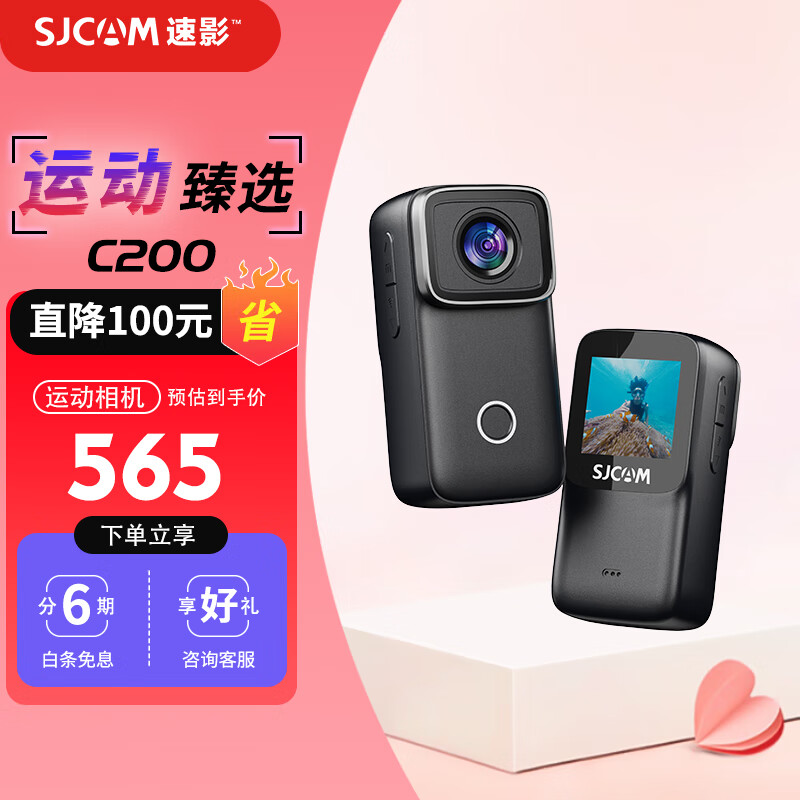 SJCAM速影 C200运动相机360摩托车行车记录仪拇指相机头戴摄像头防抖防水黑色64G卡+配件包价格:565.00元!