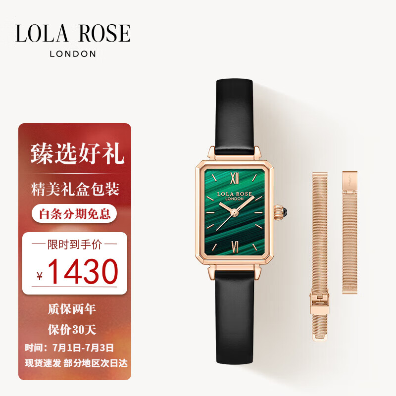LOLA ROSE罗拉玫瑰汤唯同款经典小绿表礼盒女士手表女生日礼物送女友礼盒价格:1430.00元!