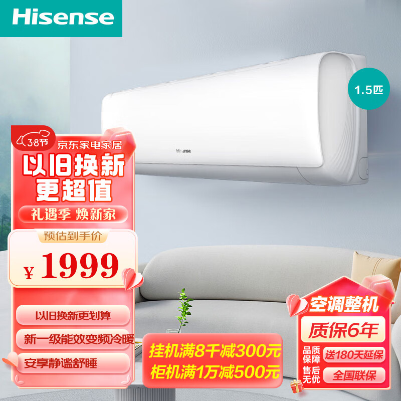 海信(Hisense)1.5匹 速冷热 新一级能效变频冷暖 高温自清洁APP远程遥控壁挂式卧室空调挂机KFR-34GW/E270-X1价格:2049.00元!