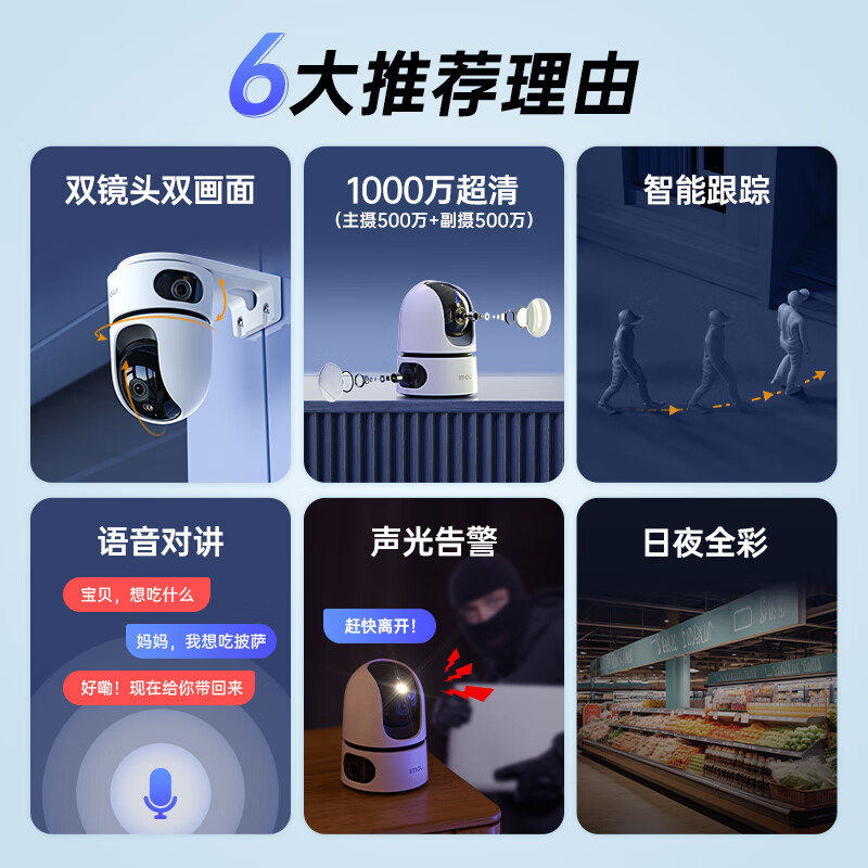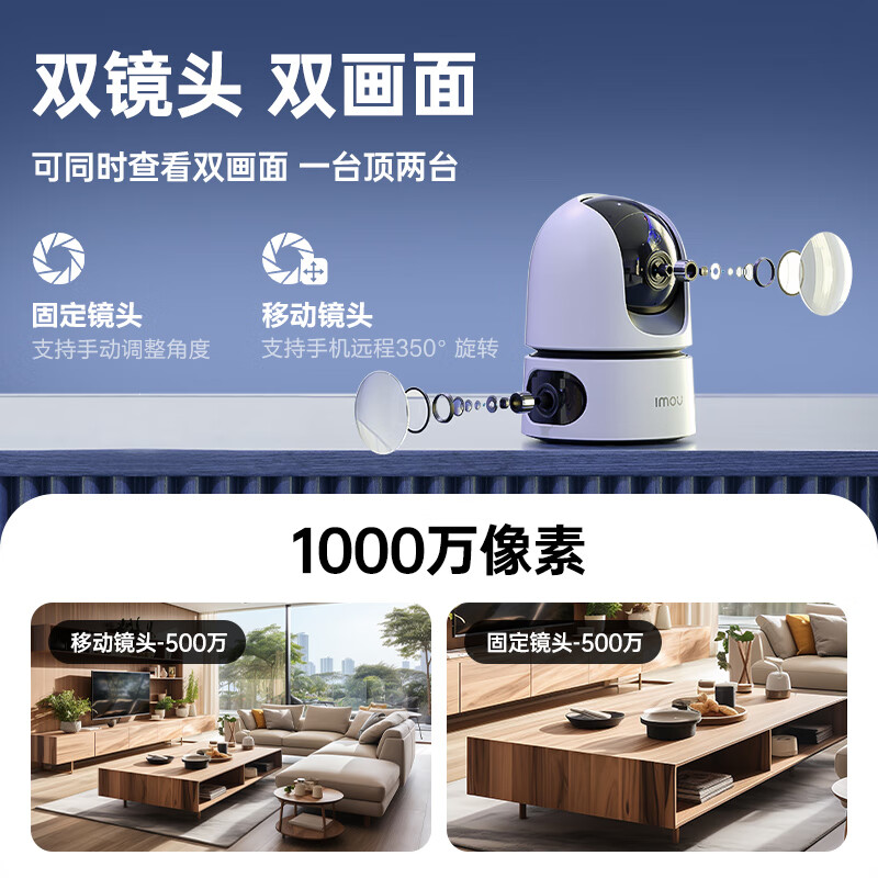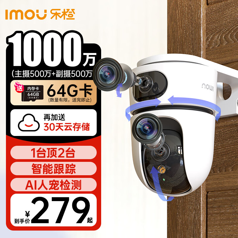 乐橙 监控摄像头家用无线 TA4D双摄1000万高清 手机远程监控360无死角带夜视全彩 宠物家庭宝宝看护器价格:279.00元!
