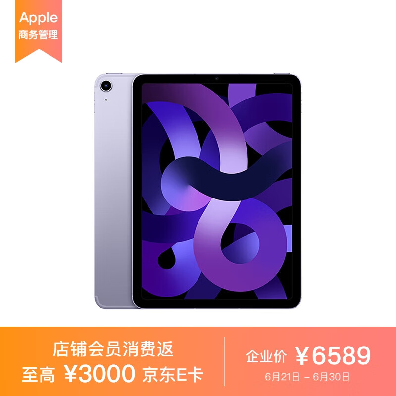 Apple iPad Air 10.9英寸平板电脑 2022年款(256G WLAN+Cellular版/M1芯片 MMEX3CH/A) 紫色*企业专享价格:7199.00元!