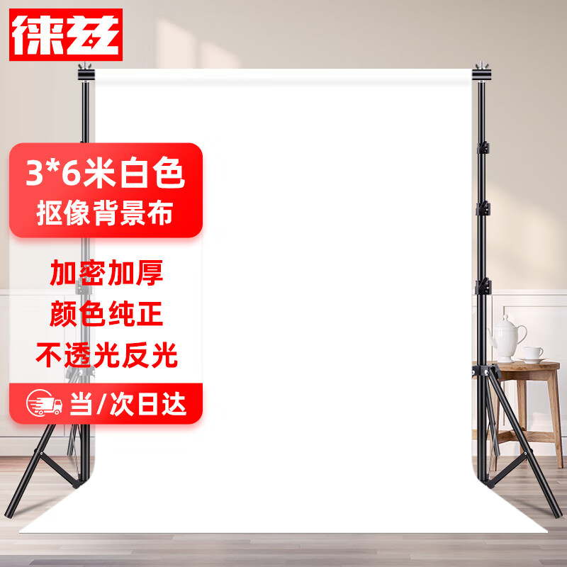 徕兹 3*6米白色背景布摄影直播白布纯色加厚幕布抠像布产品拍照背景布人像照相证件照拍摄柔光无纺布价格:199.00元!
