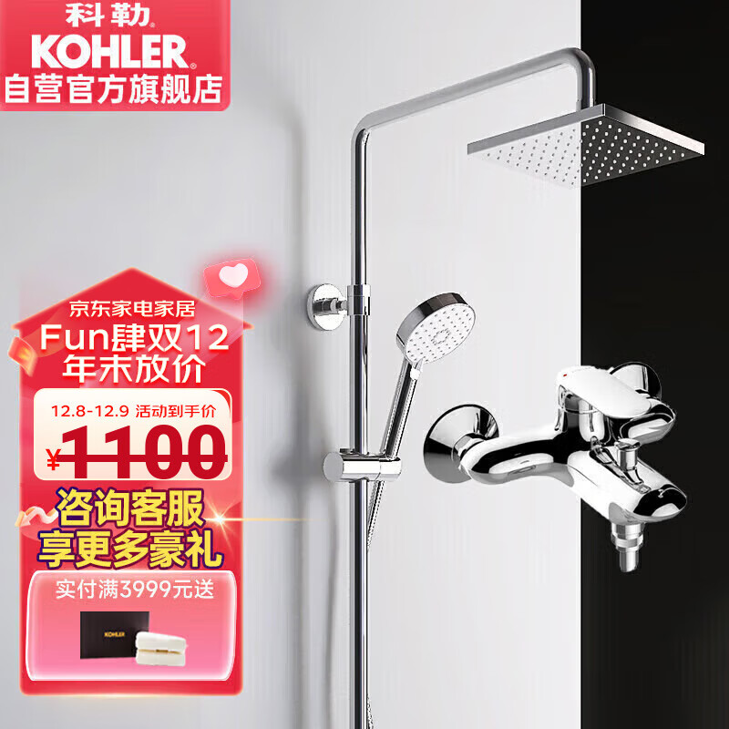 科勒(KOHLER)淋浴花洒套装三出水淋浴柱方型顶喷多功能可升降 性价比款77365T价格:1095.00元!