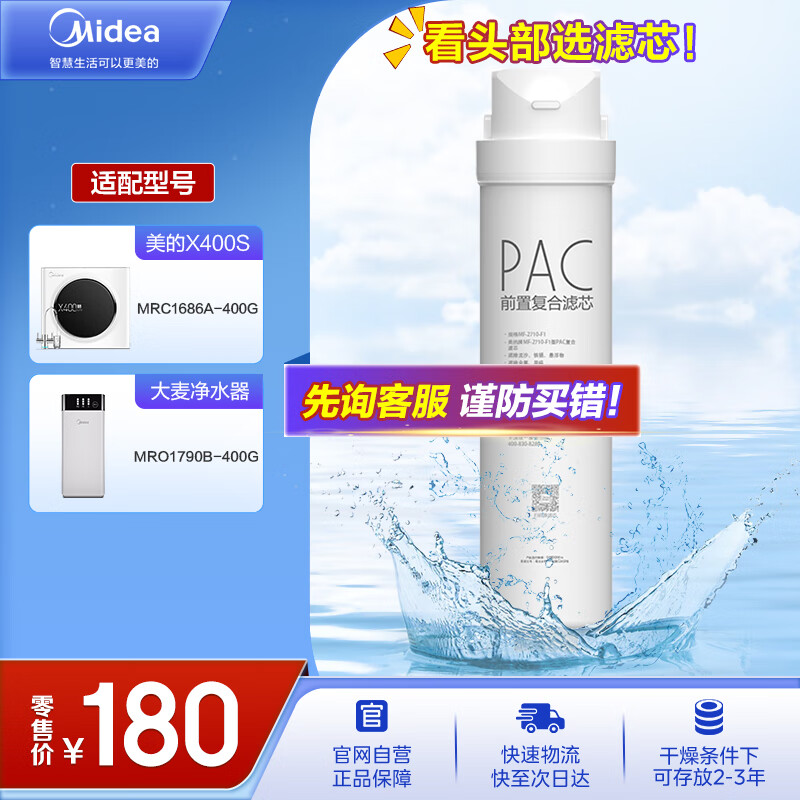 美的净水器滤芯—适用于MRO1790B-400G、WAH75-03、WAH400-01、MRO1598A-400G S1系列—PAC复合滤芯价格:180.00元!