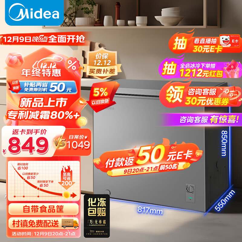 美的(Midea)200升 减霜家用囤货小冷柜 冷藏冷冻转换冰柜 一级能效母婴母乳小冰箱 BD/BC-200KMF(E)以旧换新价格:949.00元!