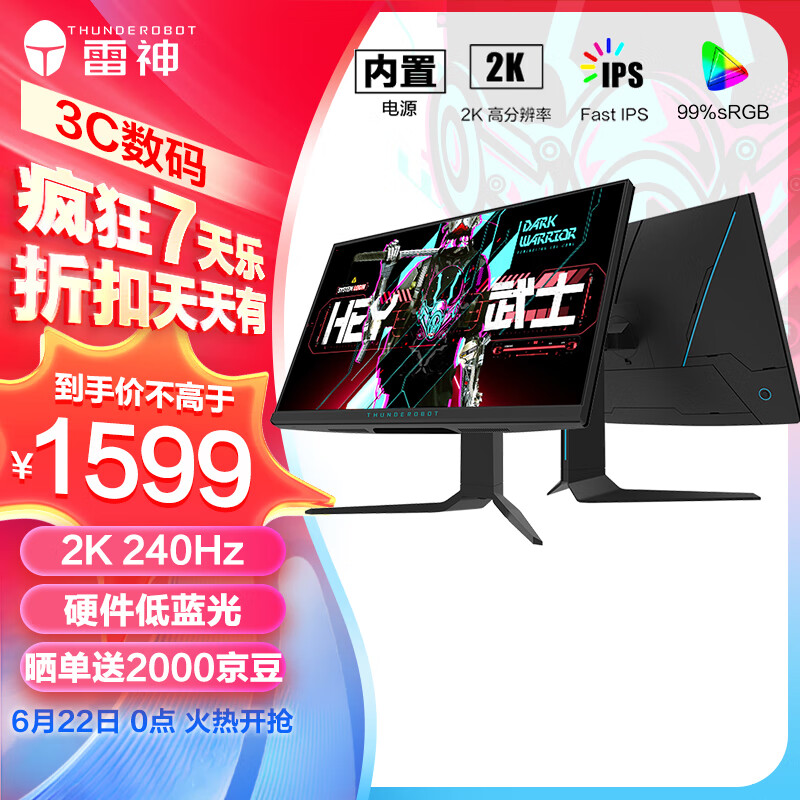 雷神黑武士27英寸2K240Hz 硬件低蓝光Fast IPS 1ms HDR400nit 升降旋转电竞游戏电脑显示器DQ27F240L价格:1599.00元!