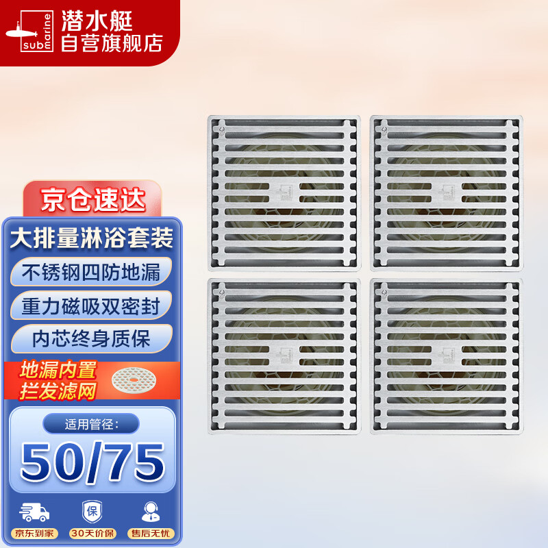 潜水艇(Submarine)不锈钢防臭地漏套装50管径大排量四个装淋浴四防地漏 超值套装价格:348.00元!