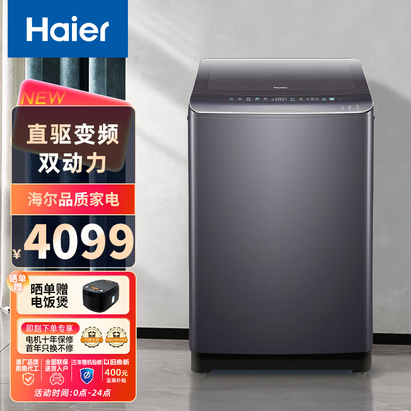 海尔(Haier)10公斤波轮洗衣机免清洗直驱双动力全自动家用大容量去污除螨一级能效MS100-BZ278价格:4099.00元!