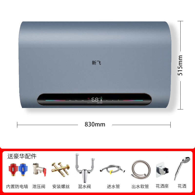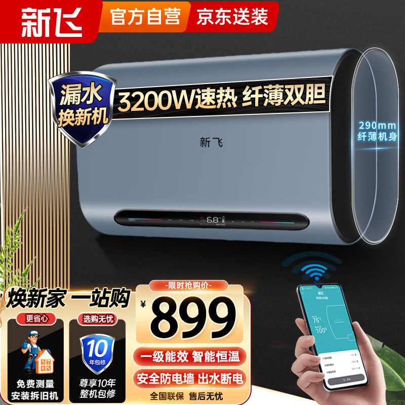 新飞电热水器家用储水式手机遥控预约80升一级能效3200W节能速热出水断电卫生间淋浴DSZF-B301-80L湛蓝价格:899.00元!