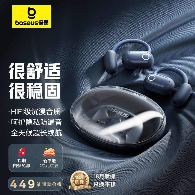 倍思 eli 开放式蓝牙耳机骨传导概念挂耳式 不入耳 运动跑步通话降噪高端无线耳机适用华为小米 黑价格:599.00元!
