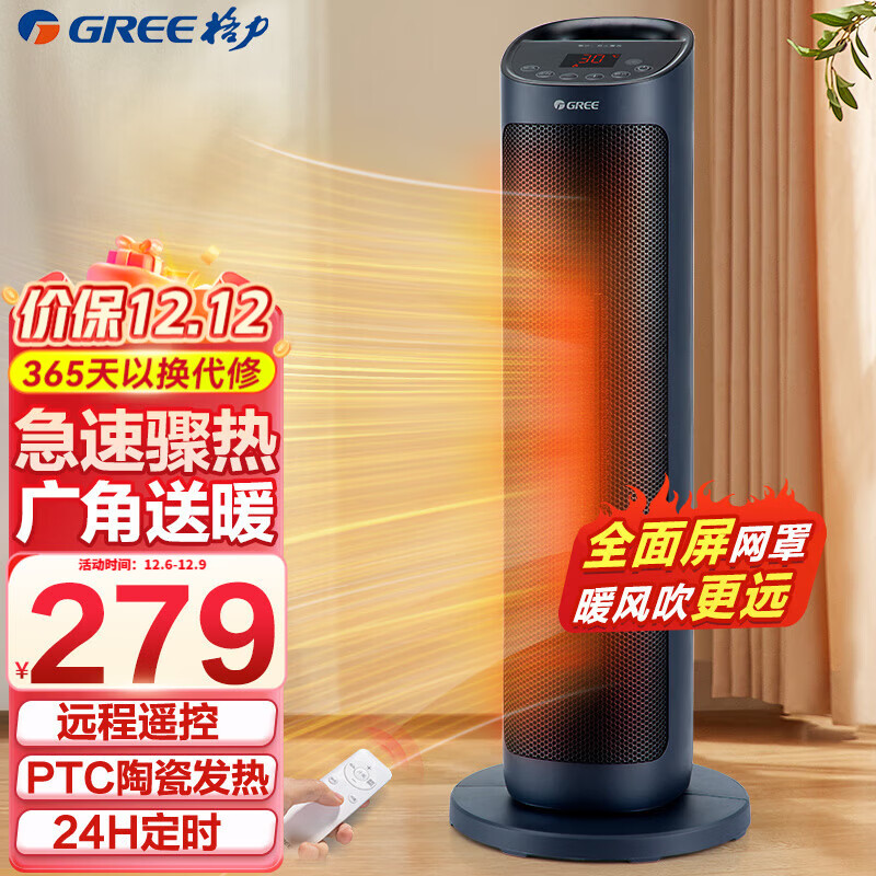格力(GREE)取暖器遥控电暖器数码显示屏电暖气家用塔式立式摇头暖风机 遥控款-碧玺蓝NTFH-S6020B价格:299.00元!