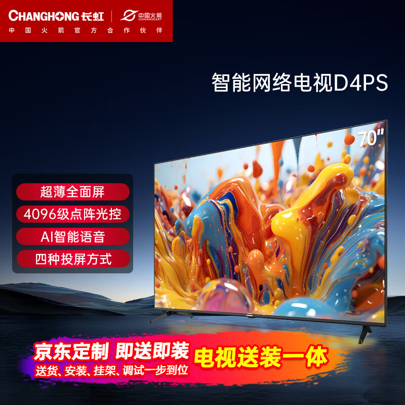 长虹电视70D4PS 【包安装】70英寸超薄无边屏 2+16GB 智能语音4K超高清 LED平板液晶电视机价格:2821.00元!