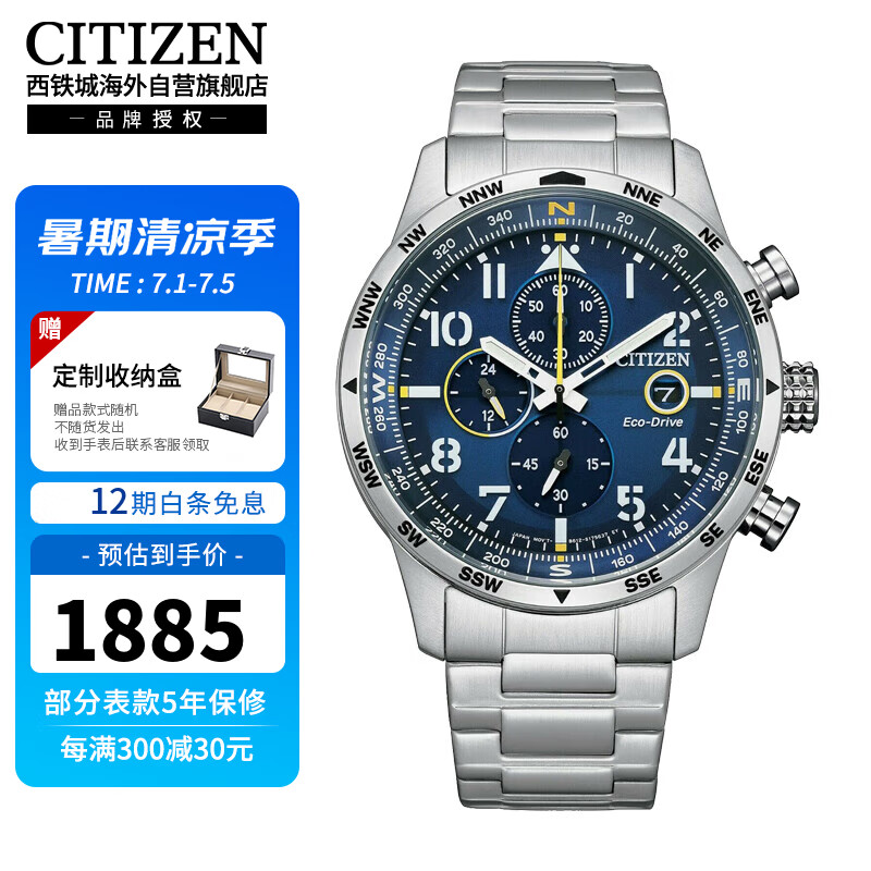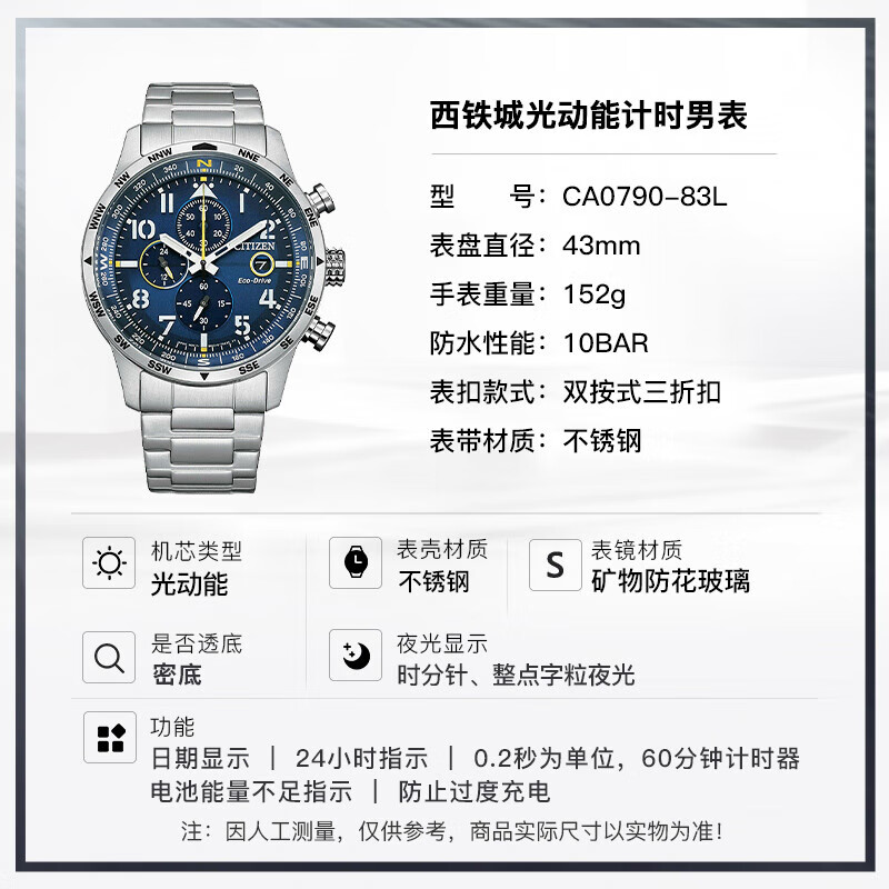 西铁城(CITIZEN)光动能蓝盘多功能运动休闲时尚夜光日历显示计时手表CA0790-83L价格:2065.00元!
