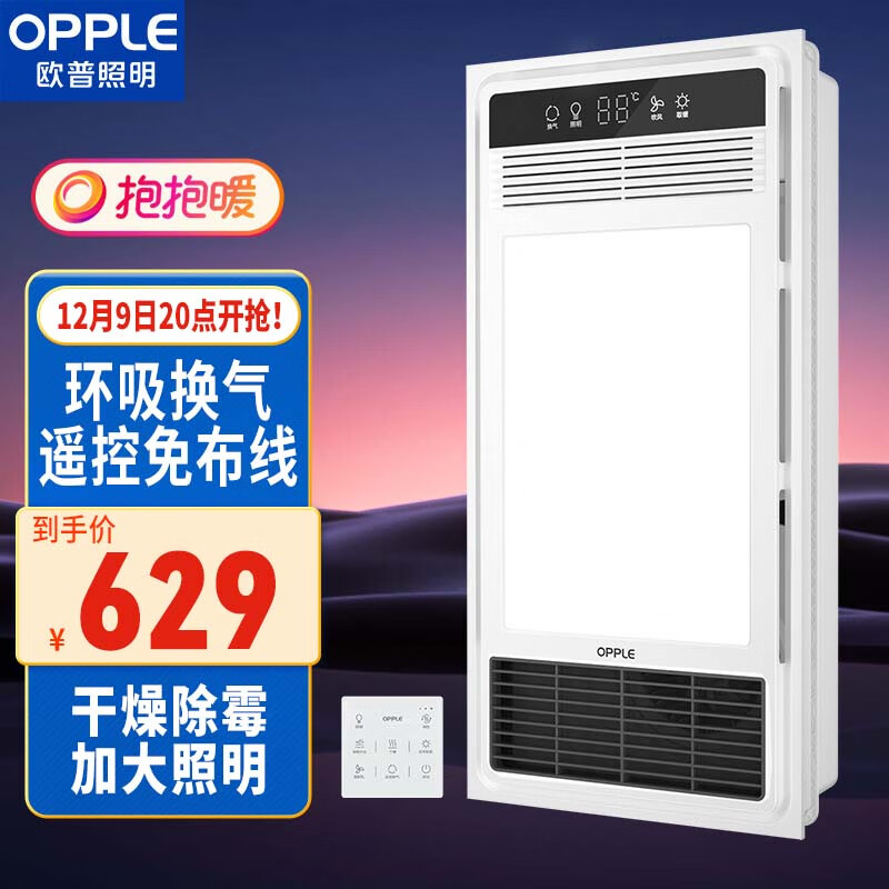 欧普照明(OPPLE)风暖浴霸取暖器超薄集成吊顶无线遥控JDSF1202-Y价格:629.00元!