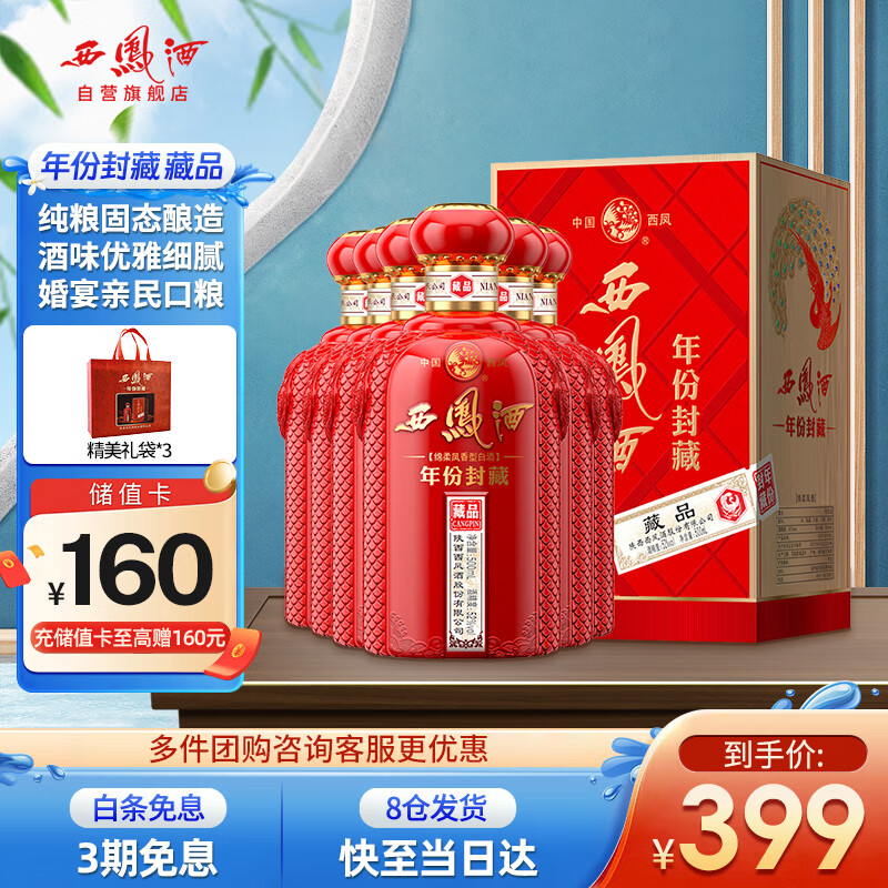 西凤酒 52度年份封藏品陕西纯粮凤香型白酒婚庆喜宴请送礼盒装500mL*6价格:399.00元!