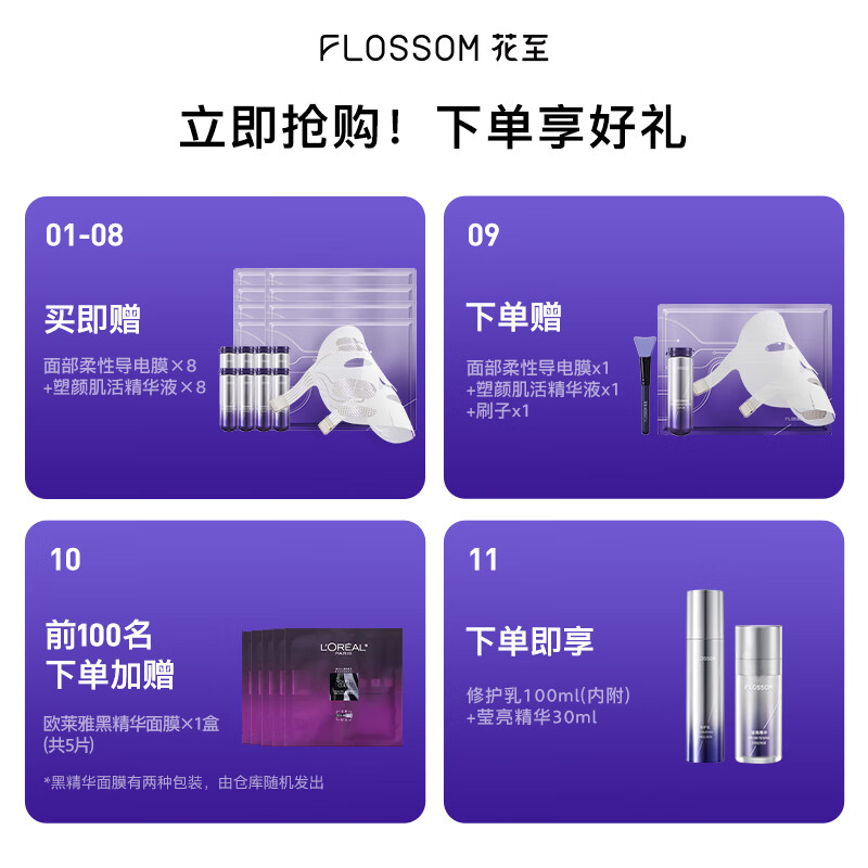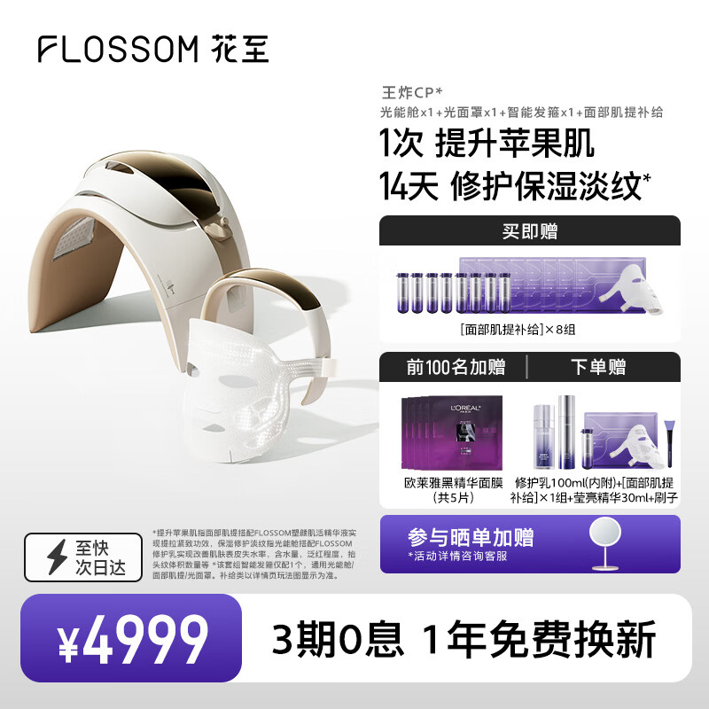 花至光能舱美容仪 面罩 大排灯 焕白美肤 舒缓修护 抑黑提亮 家用脸部 【面部补给组合】价格:4999.00元!