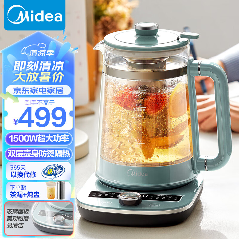 美的(Midea)轻净系列养生壶 煮茶器 316不锈钢煮茶壶恒温保温1500W双层防烫电热水壶 24H预约烧水壶MK-YS01-I价格:499.00元!