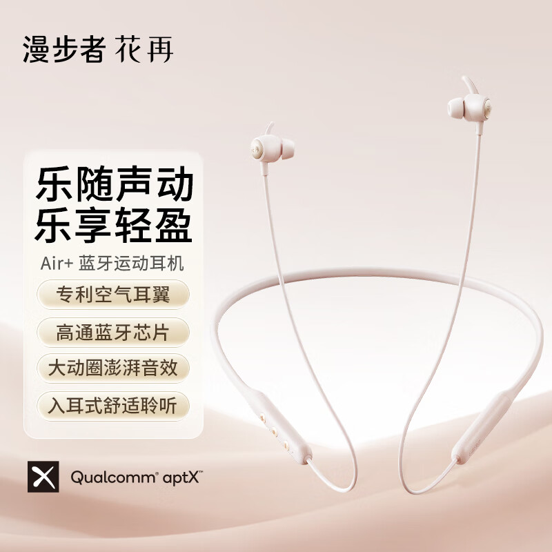 漫步者花再 EDIFIER Air+颈挂式运动蓝牙耳机 挂脖式设计 空气耳翼结构 氧气粉价格:188.00元!