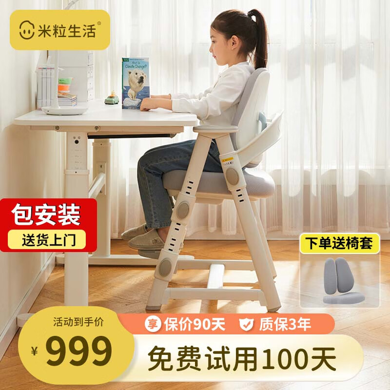 米粒生活F3儿童学习椅子可升降小学生写字椅家用书房座椅端正坐姿132F灰价格:1299.00元!