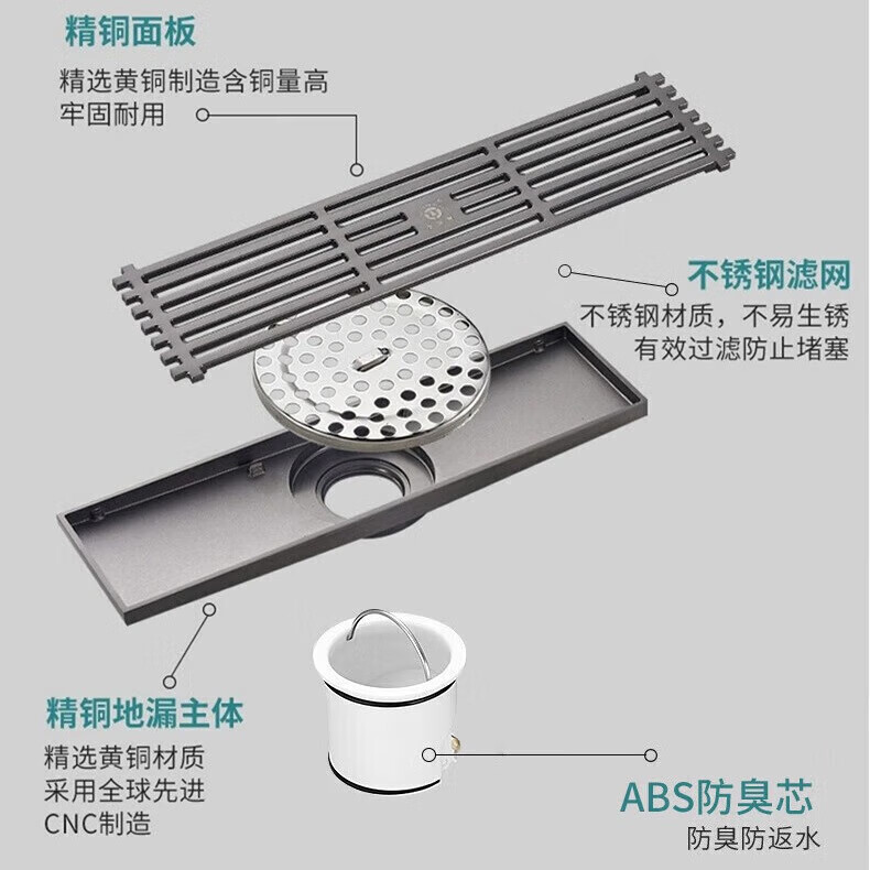 老铜匠枪灰色长条地漏大号(8.2*30cm)配置参数: