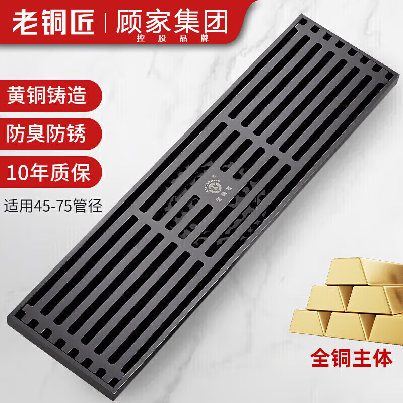 老铜匠顾家集团长条全铜地漏防臭卫生间淋浴房浴室长方形加长大排量条形价格:216.11元!