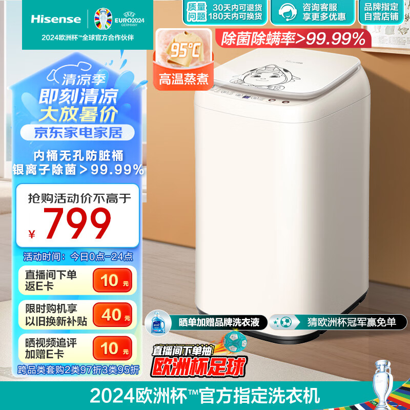 海信(Hisense)小哈利波轮洗衣机全自动 3公斤迷你洗衣机小 儿童婴儿洗衣机 无孔内桶高温煮洗HB30DF645M以旧换新价格:799.00元!