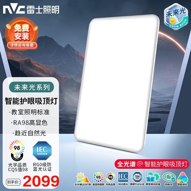 雷士(NVC)大瓦数客厅大灯吸顶灯led奶油风智能高端全光谱健康护眼灯X未来光价格:2699.00元!