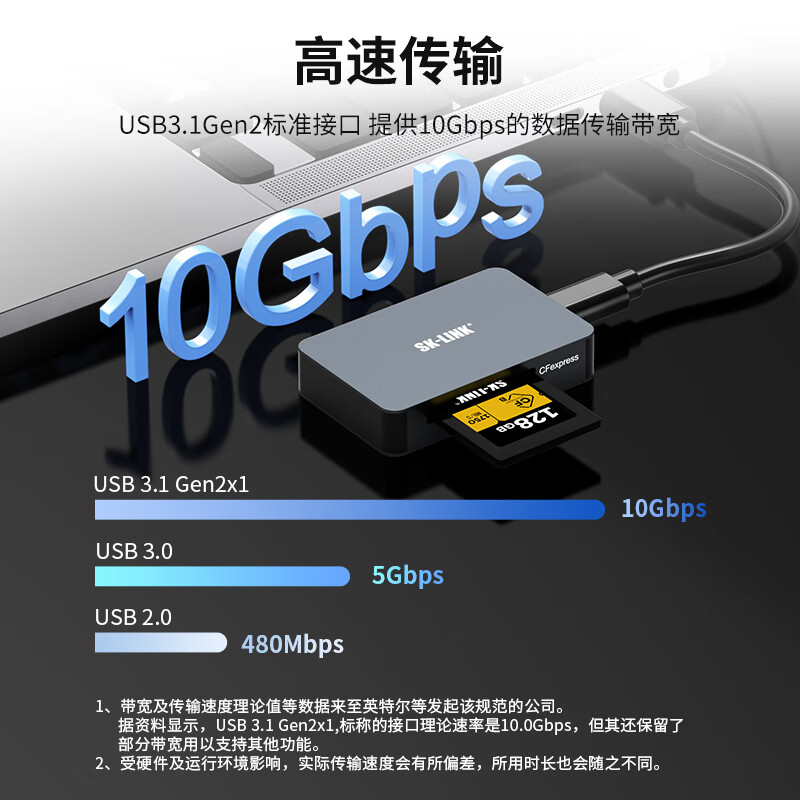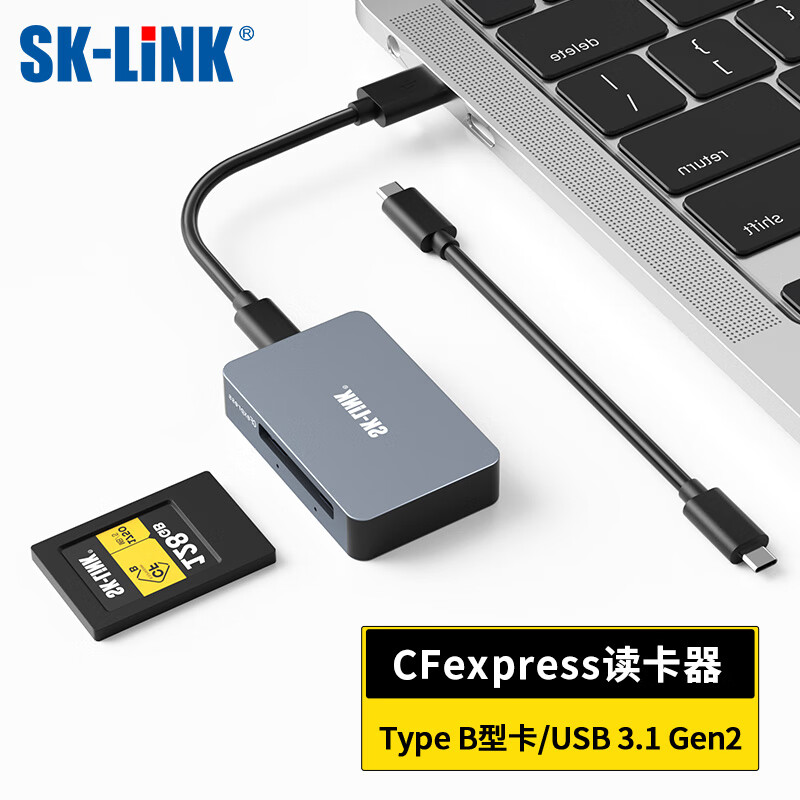 SK-link CFexpress读卡器 Type-B型cfeb卡高速CFe读卡器 适用佳能尼康松下富士大疆雷克沙【单CFe B卡槽】价格:229.00元!