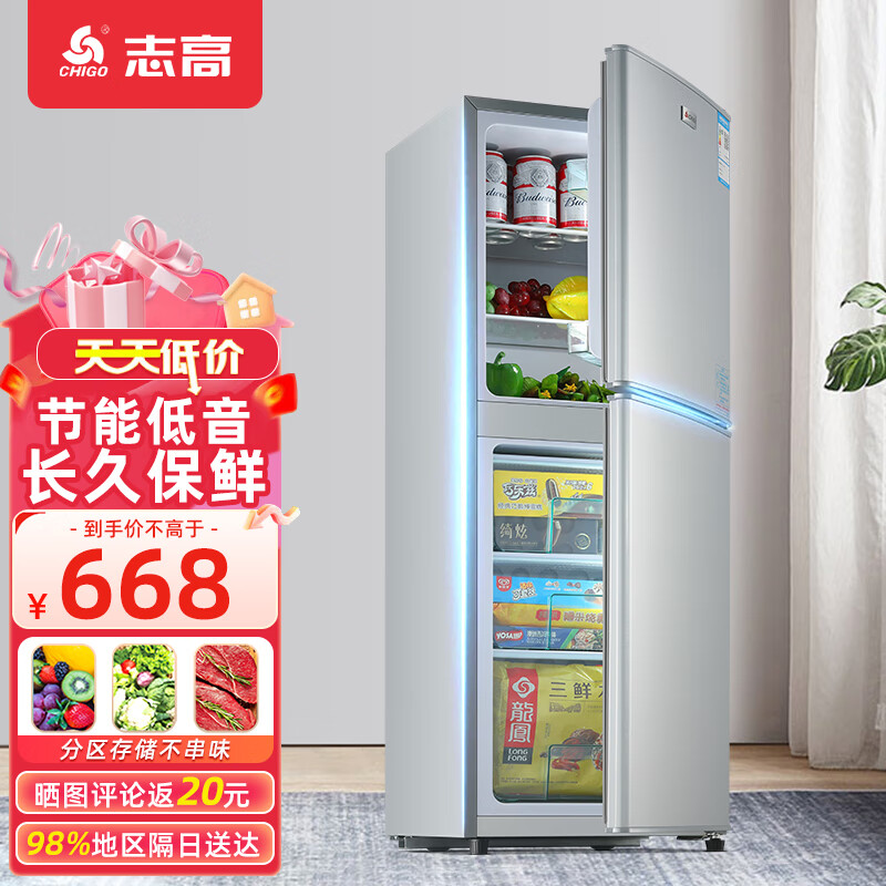 志高(CHIGO)冰箱168升小型家用 宿舍租房优选 冷藏冷冻双开门 迷你电冰箱 节能保鲜低噪 BCD-168D 银色价格:698.00元!