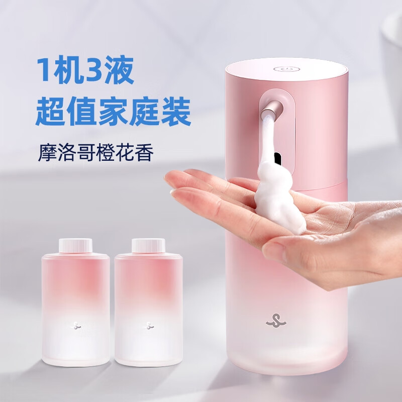 小卫自动洗手机 千禧粉家庭装 智能感应泡沫洗手机 洗手机+替换装300ml*3价格:163.91元!