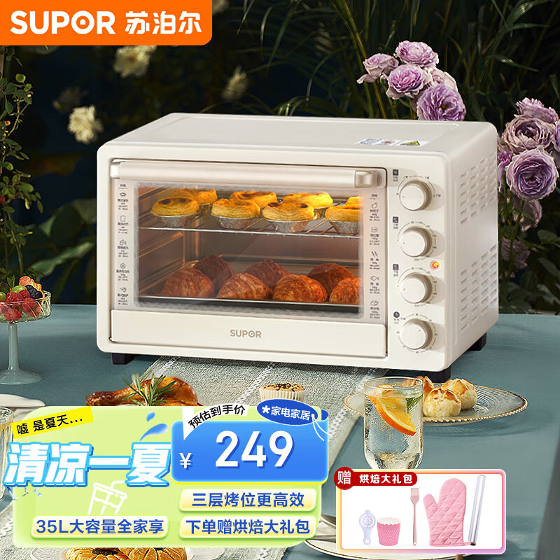 苏泊尔(SUPOR)家用多功能35L大容量电烤箱 上下独立控温 多层烤位专业烘焙带炉灯 OJ35A801价格:249.00元!
