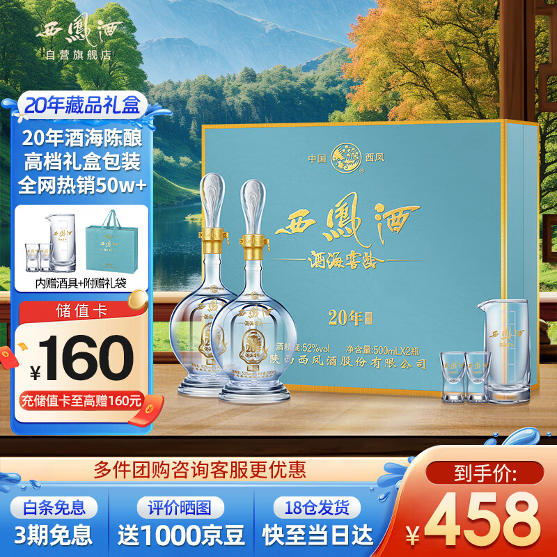 西凤酒 20年52度藏品纯粮凤香型白酒海窖龄婚庆喜宴请送礼盒装500mL*2价格:488.00元!