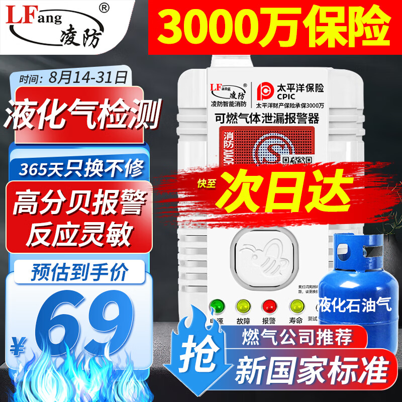 凌防(LFang)JY-QF310 煤气罐液化石油气燃气报警器 智能家居家用厨房煤气泄漏感应探测报警器价格:69.00元!