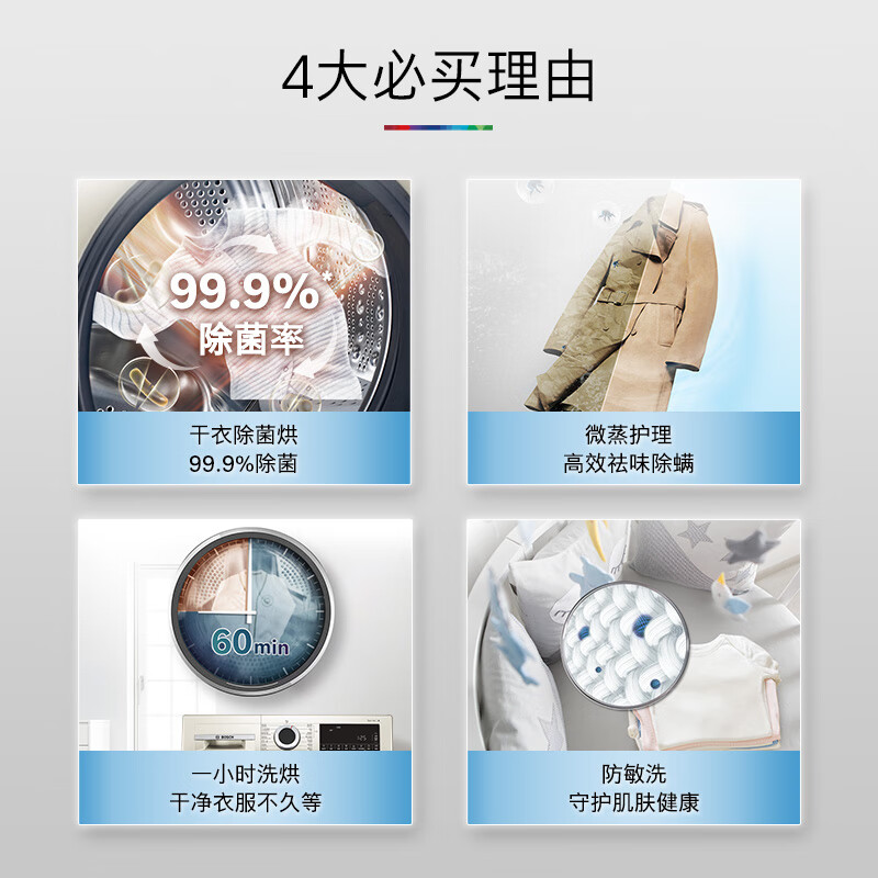 博世(BOSCH)【除菌洗烘】10公斤家用大容量全自动滚筒洗衣机洗烘一体机 微蒸护理 祛味除螨热风除菌WNA254VA9W价格:3999.00元!