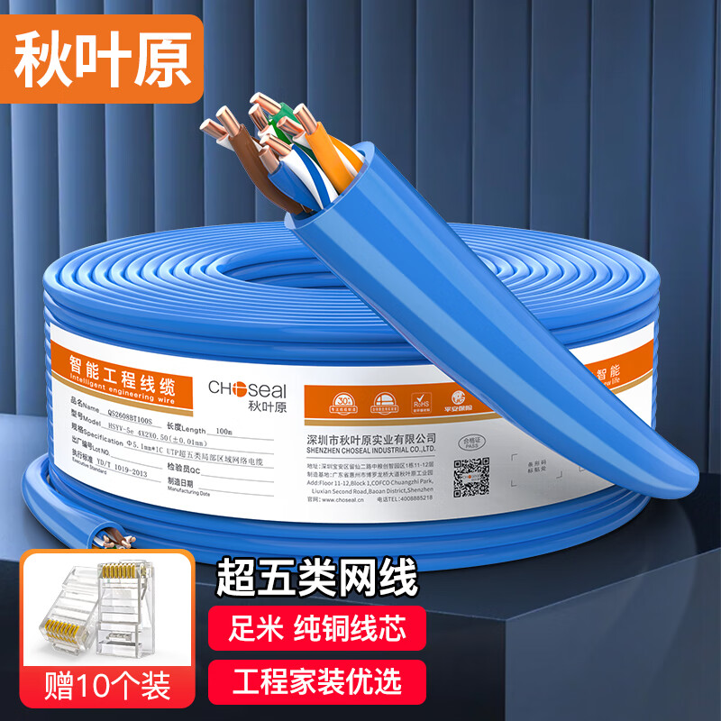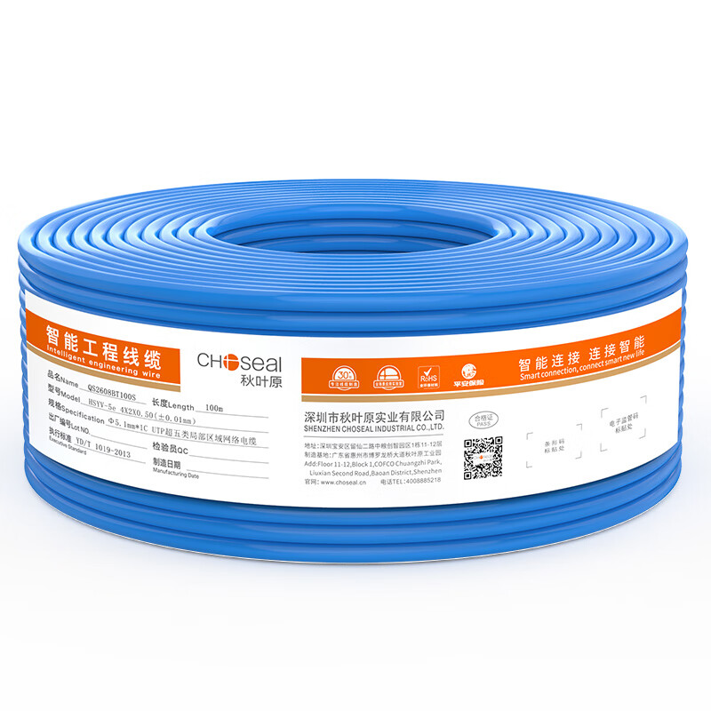 秋叶原(CHOSEAL)原装超五类网线【0.5±0.01mm】CAT5e纯铜线芯 非屏蔽工程网线监控线蓝色100米 QS2608BT100S价格:229.00元!