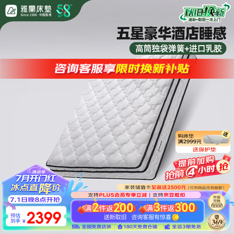 雅兰床垫91%高纯乳胶软硬双面独袋弹簧床垫 金梦豪尊享版 150*200cm价格:2999.00元!