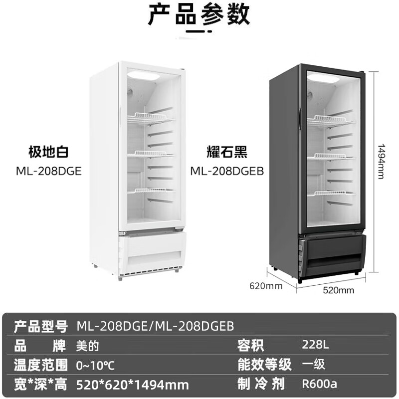 美的展示柜商用冷藏柜冰柜210升立式单门冰箱饮料柜 便利店保鲜柜蛋糕柜鲜花柜 一级能效 ML-208DGE价格:1059.00元!