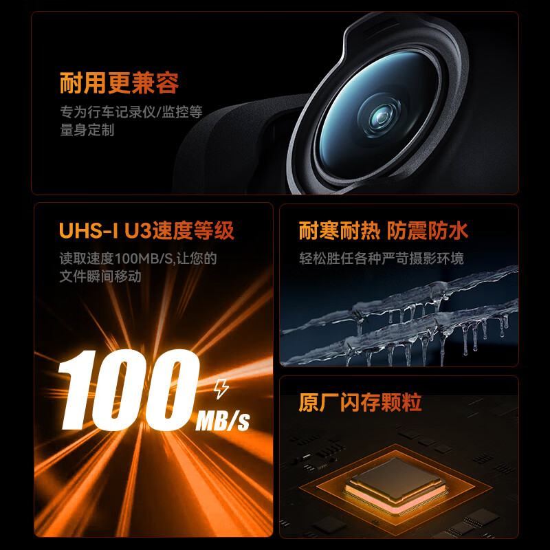 毕亚兹(BIAZE)256GB TF(MicroSD)存储卡 行车记录仪&安防监控专用内存卡 读速100MB/S 家庭监控高度耐用价格:129.00元!