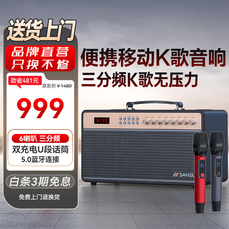 山水E6无线蓝牙音箱低音炮户外便携小型移动K歌露营音响一体机声卡直播广场舞音响音乐播放器乐器音箱价格:999.00元!