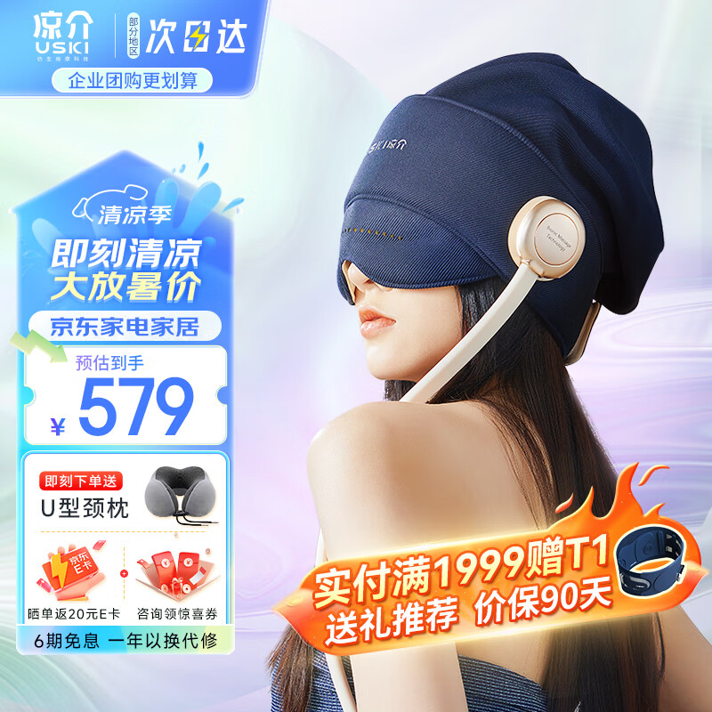 凉介USKI头部按摩器 R1S蓝 头眼颈一体式睡眠仪2.0 头部按摩眼部热敷按摩仪 生日礼物 实用礼品价格:579.00元!