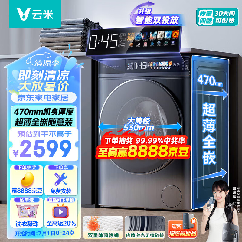 云米(VIOMI)滚筒洗衣机全自动 超薄全嵌 10公斤洗烘一体 彩屏 智能投放 除菌 Master2大筒径 WD10FT-G6A价格:2599.00元!