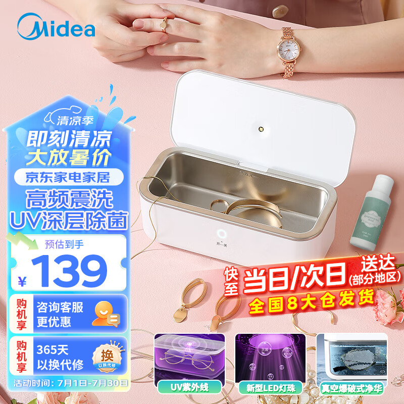 美的(Midea)超声波清洗机眼镜清洗机小迷你家用首饰假牙套化妆刷紫外线杀菌超声波洗眼镜MHJ36-01GCWY价格:139.00元!