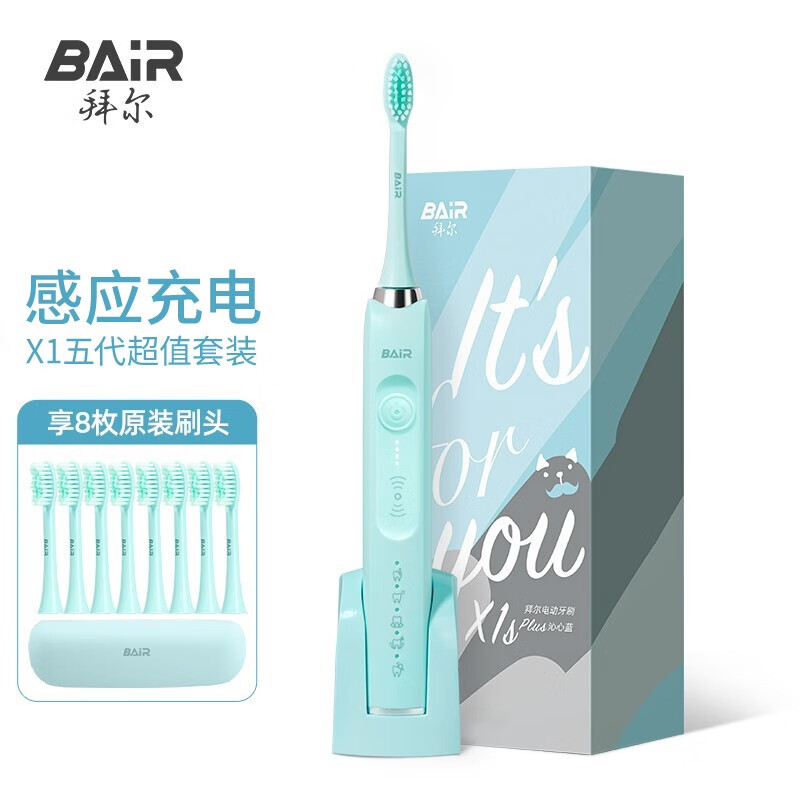 拜尔(BAIR) X1S+plus电动牙刷 成人感应充电式声波全自动软毛刷学生党情侣男士女送男女朋友 沁心蓝价格:198.00元!
