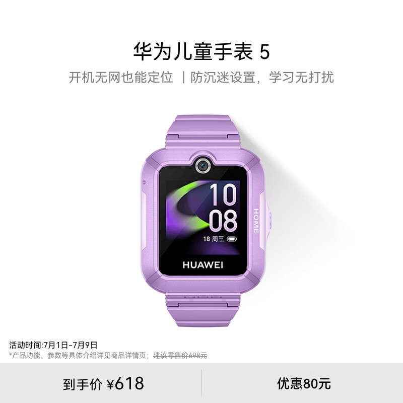 华为儿童手表 5华为手表智能手表离线定位电话仲夏紫价格:618.00元!
