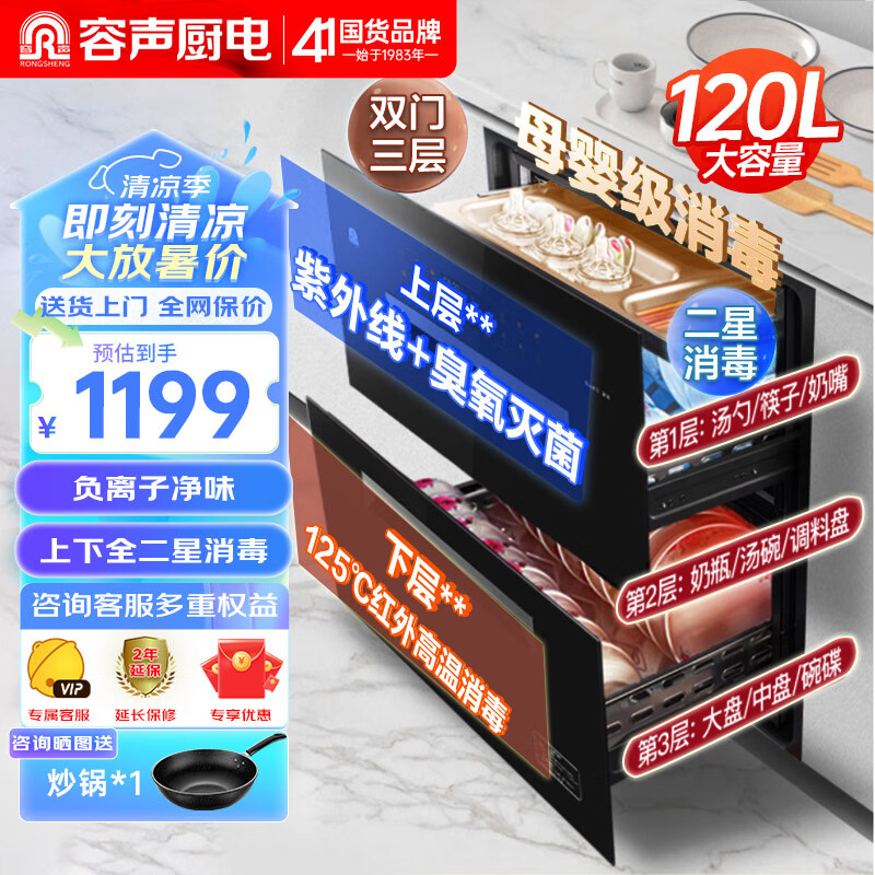 容声(RONGSHENG) 三层二星 消毒柜 嵌入式 家用 消毒碗柜 高温 臭氧 厨房碗筷消毒柜 120L大容量RX03D价格:1149.00元!