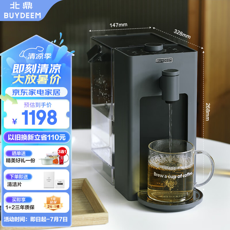 北鼎(Buydeem)台式饮水机办公室桌面即热式饮水机速热饮水机泡茶机智能饮水机一体机3L S902水墨灰 价格:1198.00元!